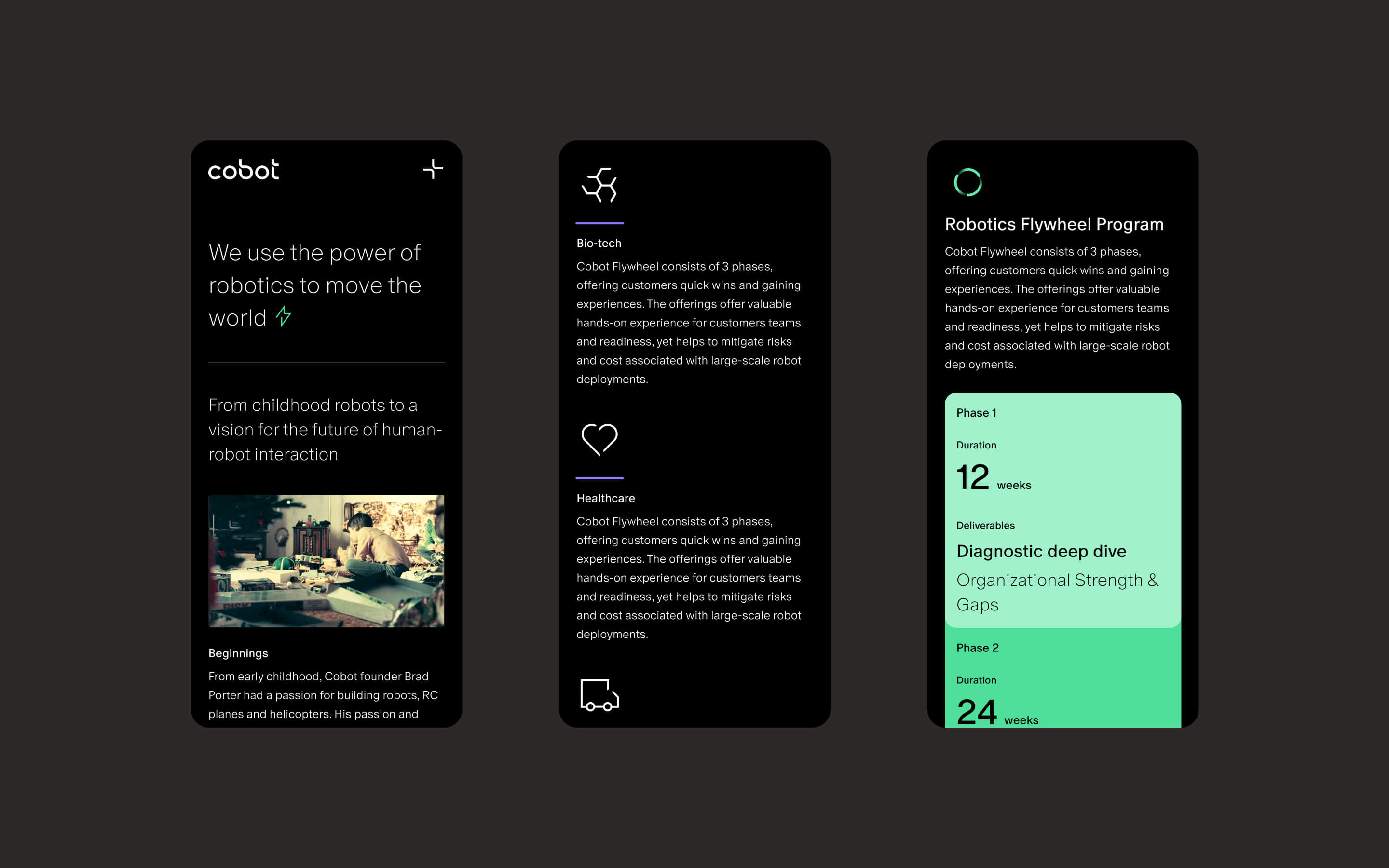 Cobot was founded in 2022 by former Amazon VP of Robotics Brad Porter, with a team of robotics and AI experts from major tech companies. As Design Lead for More Air Studio, my role was to create a new brand identity system, including logo and brand book, and responsive website. Using the core tenants as a framework - Trustworthy, Adaptable, Useful - we created a logo that embodied synergy between humans and robots using a modern, minimal style with a playful expressive twist.