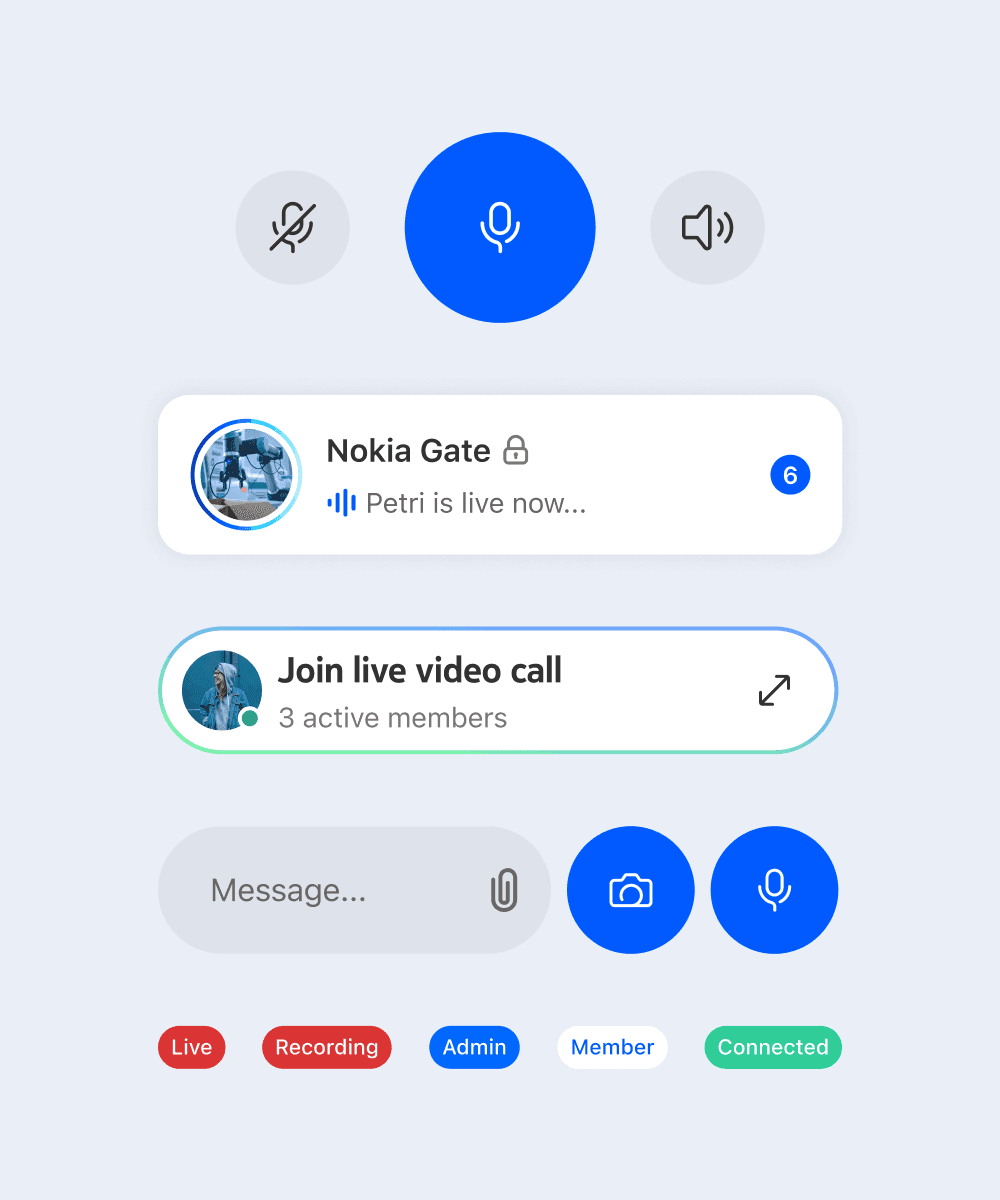 Working at More Air Studio, the brief was to design Nokia Team Comms - a team communications app for challenging environments like ports or construction sites. My role as Product Design Lead was to establish the UX and user testing framework, and build out the UI and flows for the app for build. I explored the brand elements and ‘waveform’ as a key component, looking at ways of visualising voice in simple and unique way to give the app a distinct look-and-feel.