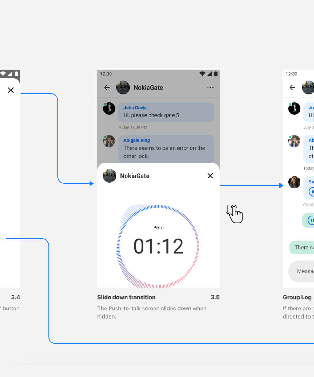 Working with other members of the Nokia design team, we then iterated and refined the flows to produce a consistent and well considered final design before build. The result was a robust and user-friendly app that works in extreme working environments without the need for internet connectivity, offering safe and reliable communication to teams and workers. The app got recognised for an iF Design Award for User Experience.